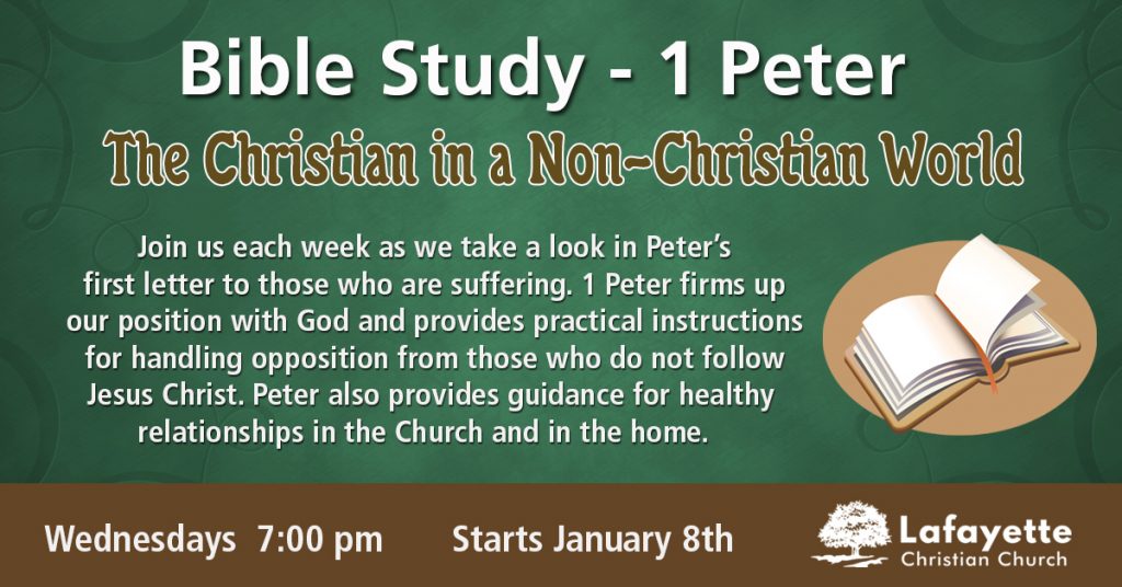 Join us each week as we study Peter’s first letter to those who are suffering. 1 Peter firms up our position with God and provides practical instructions for handling opposition from those who do not follow Jesus Christ. Peter also provides guidance for healthy relationships in the Church and in the home.